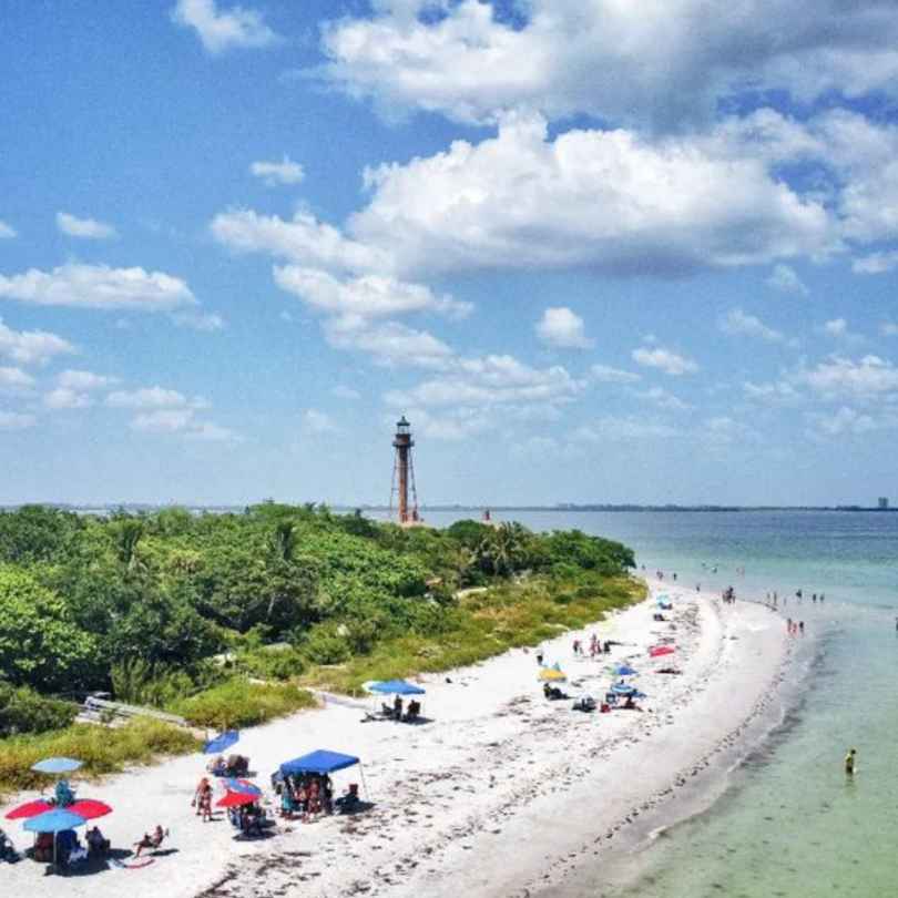 La Isla de Sanibel ofrece dos playas destacadas: la Playa de Bowman y la Playa del Faro de Sanibel.